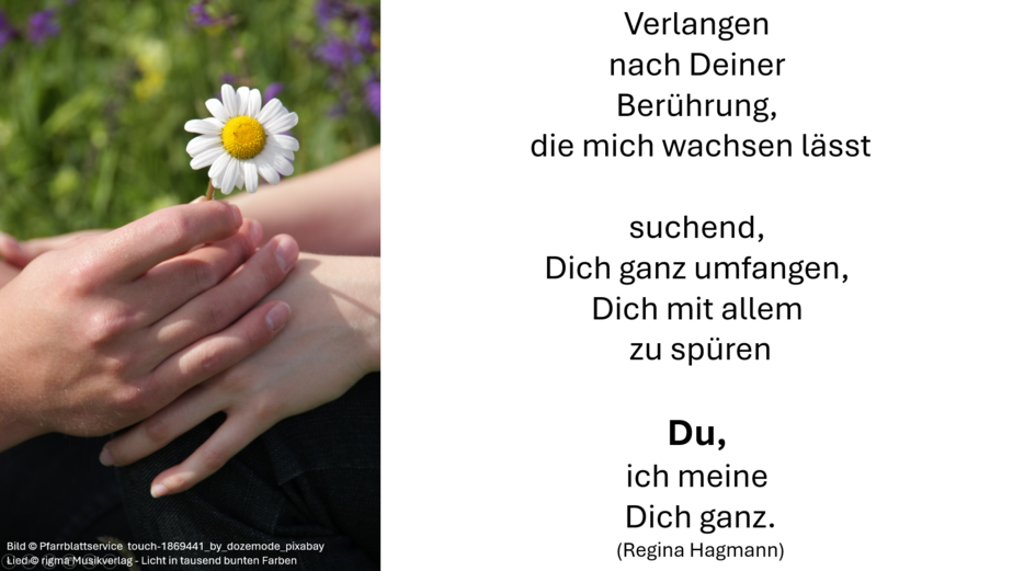 Die Impulse, bestehend aus einer einleitenden Frage und einem darauf antwortenden Zitat, einem passenden Bild und untermalender Instrumentalmusik, luden Ehepaare jeden Alters dazu ein, in ihrer jeweiligen Lebenssituation den Blick bewusst auf die Beziehung zu lenken und den Kraftquellen, die die Liebe stärken, nachzuspüren und darüber ins Gespräch zu kommen.