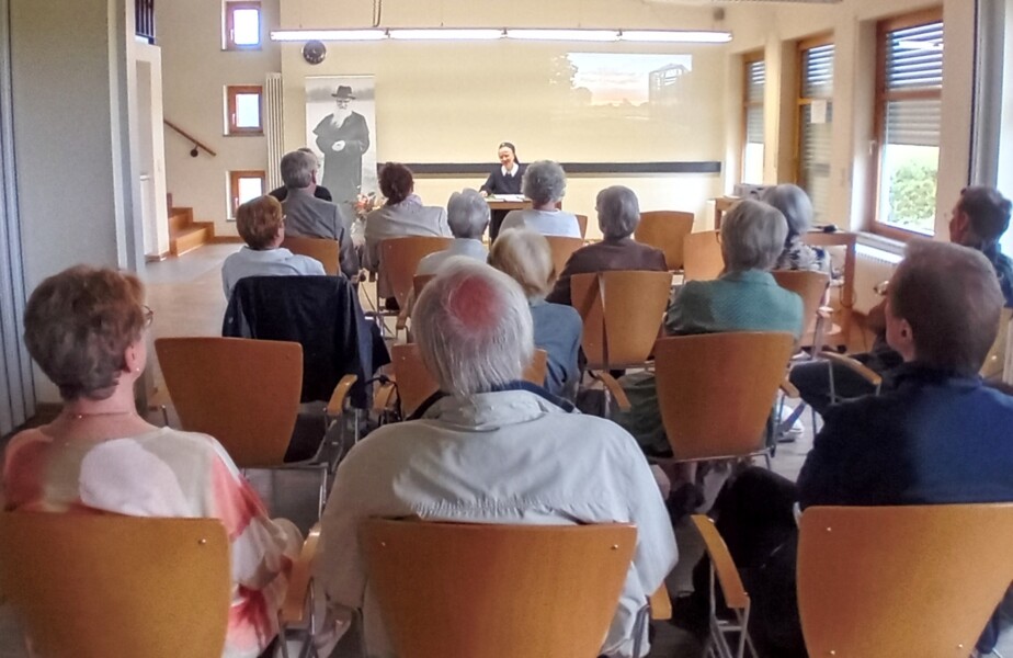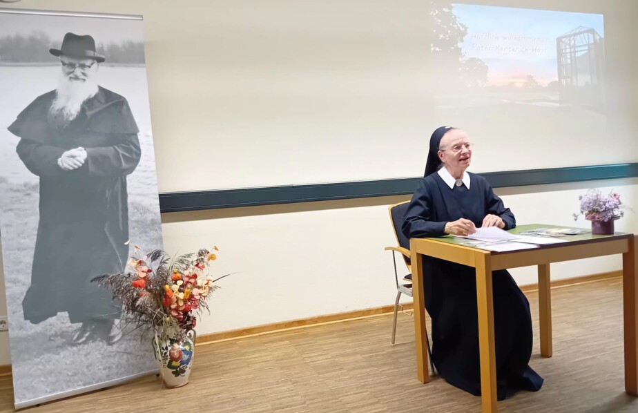 Im zweiten Teil des Vortrags erschloss Sr. Gisela-Maria Hoffnungsspuren im Leben Pater Kentenichs. Anhand von Bildern vier ausgewählter Exponate nahm sie die Zuhörerschaft mit in das Pater-Kentenich-Haus in Schönstatt. Diese verdeutlichten, wie der Gründer gerade in den schwierigen und schwierigsten Situationen seines Lebens mit der Hoffnung eines in Gott beheimateten Menschen in immer größeres Vertrauen hineingeführt wurde und auch uns heute als „Pilger der Hoffnung“ begleiten kann.